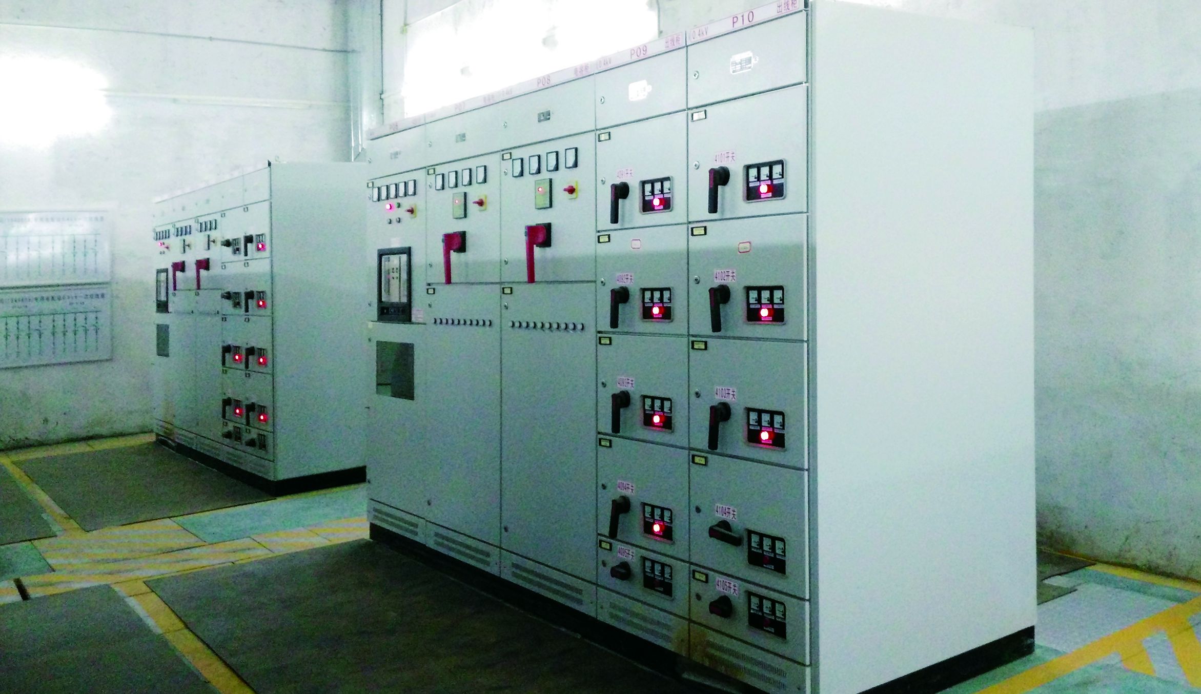 總功率為6400kVA,配制4臺S11-M-1600kVA變壓器,采用KYN高壓短路器柜,額定電流1250A的高壓配電柜,抵壓配電柜為GCK抵壓斷路器柜,備用電源為800kW備用發(fā)電機。