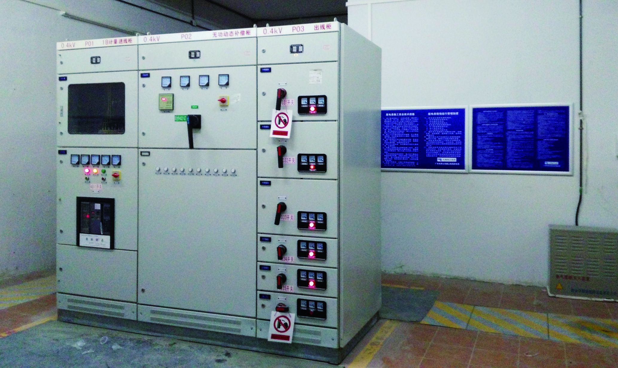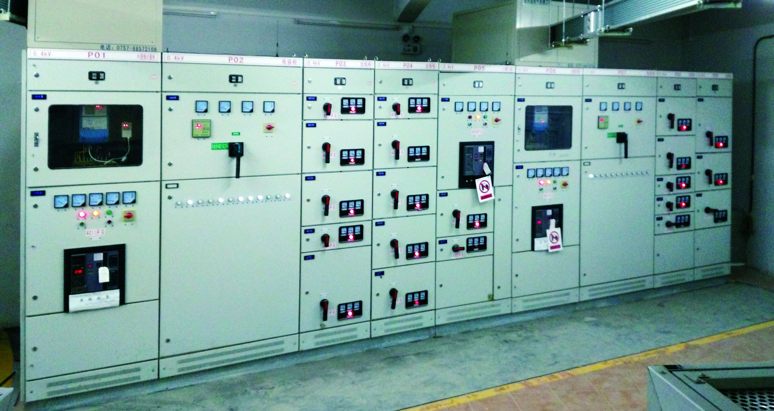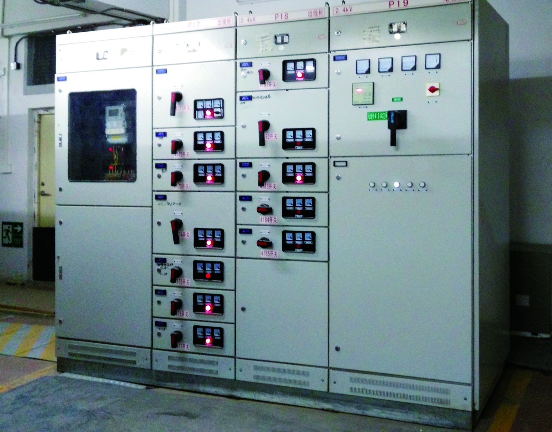 總功率為3800kVA,配備4臺(tái)800kVA和1臺(tái)630kVA變壓器,高壓配電柜采用XGN高壓負(fù)荷開(kāi)關(guān)柜,額定電流630A,抵壓配電柜采用GCK斷路器柜,單個(gè)配電房總功率為1600kVA,備用電源為2臺(tái)400kW備用發(fā)電機(jī)。